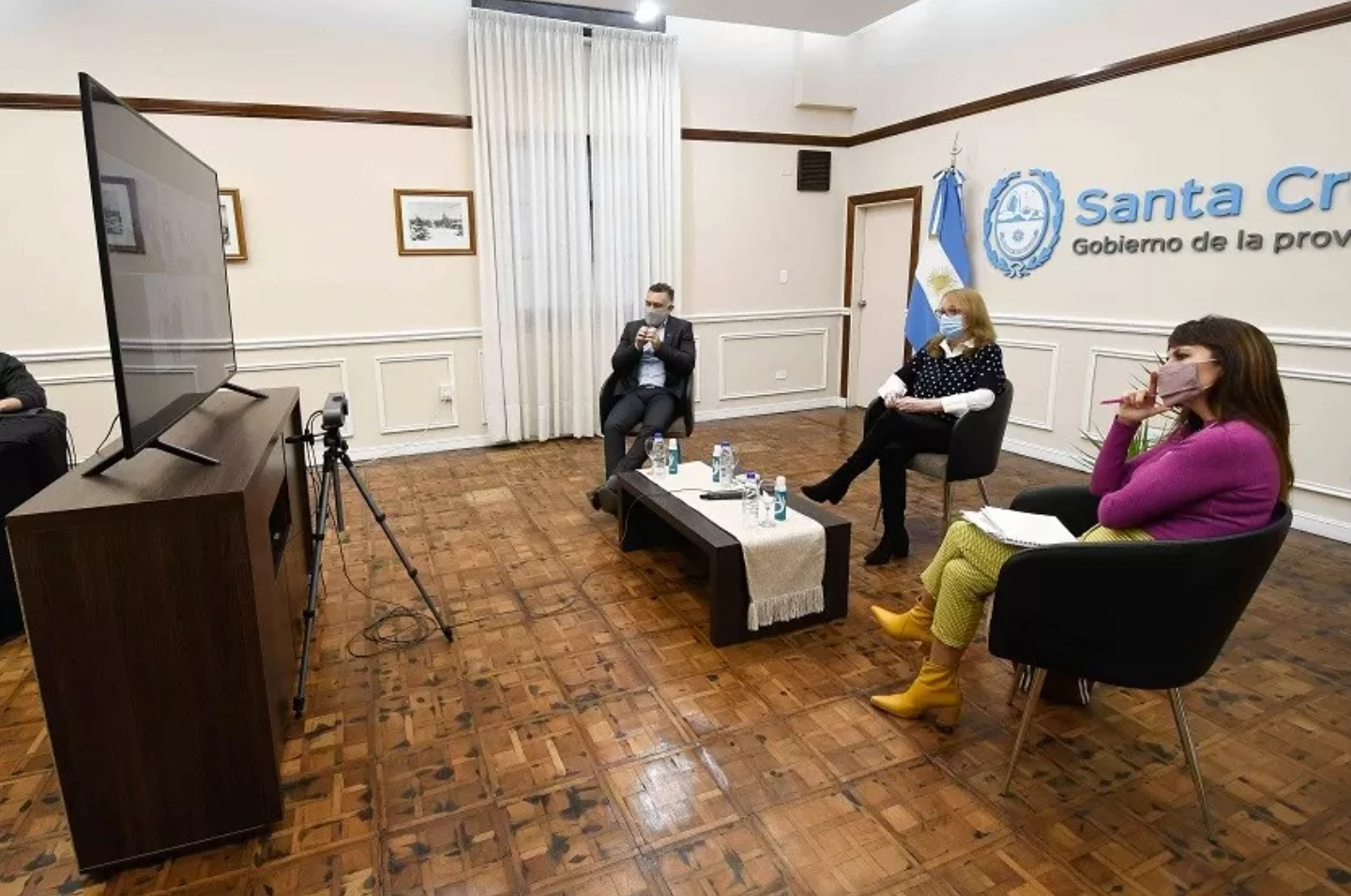 Durante el evento, acompañaron a la gobernadora el jefe de Gabinete Leonardo Álvarez; la ministra de la Producción, Comercio e Industria, Silvina Córdoba; el presidente del IESC, Matías Kalmus y la gerenta de Energías Renovables, Lorena Leonett. También estuvieron presentes, el intendente de Pico Truncado, Osvaldo Maimó; y el representante de Santa Cruz ante el CFI, Andrés La Blunda
